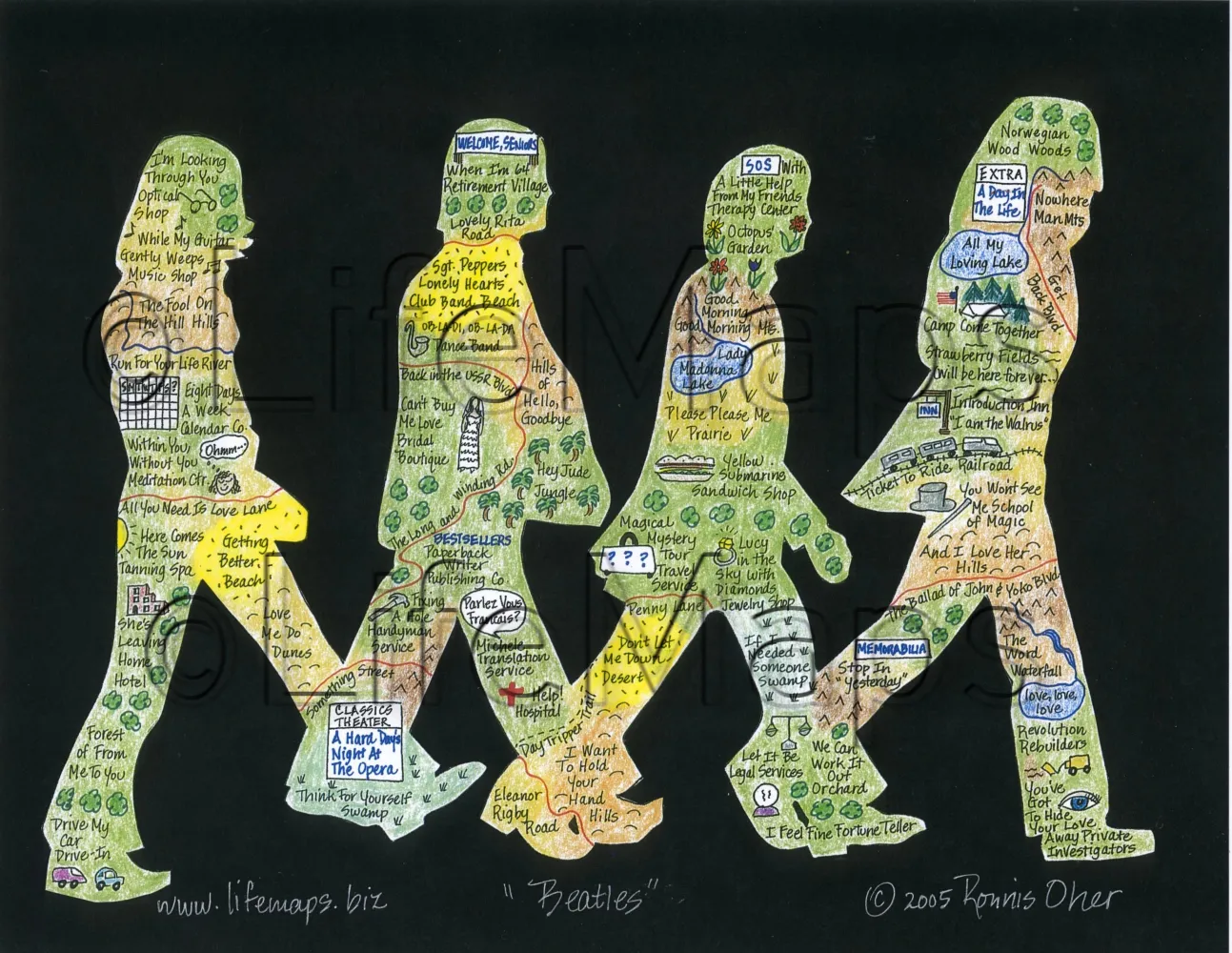 Have a custom music map created. Choose your 20 favorite songs from that group/artist to be represented as a map - mounted on mat board with a finished size of 11” x 14”. Contact us for details and pricing.